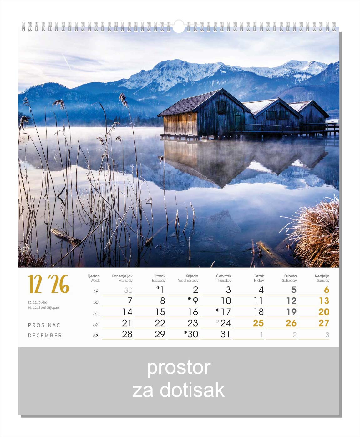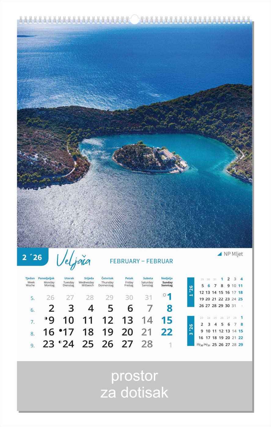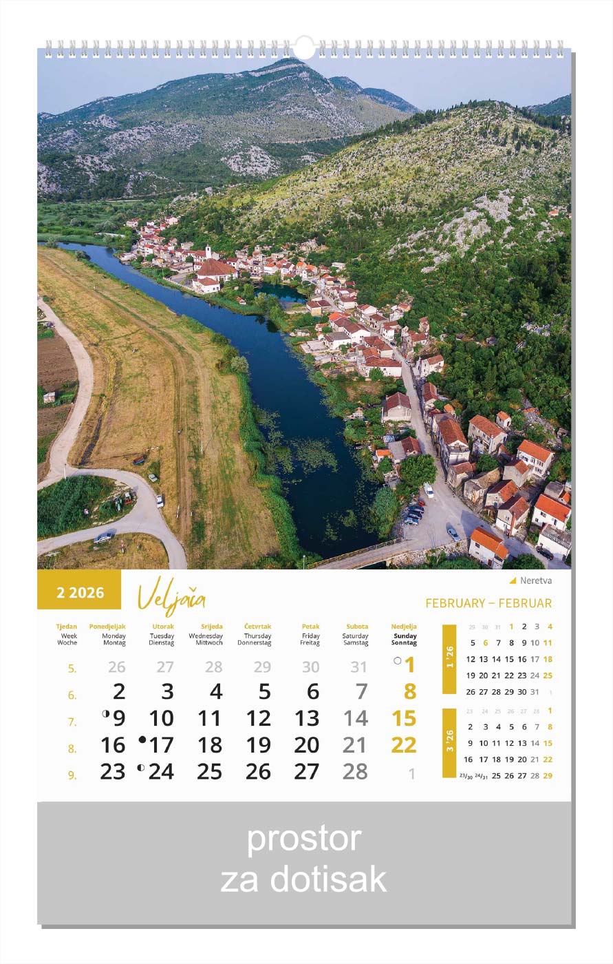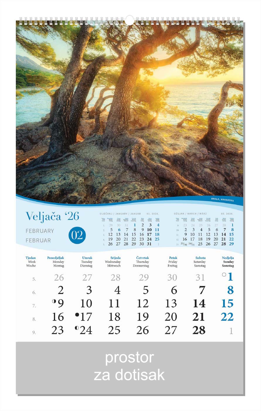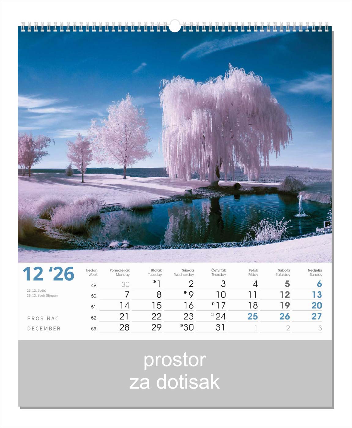 Kao i do sada i u 2026. godini imamo u programu izradu kalendara s individualnim dizajnom. Za kalendare se koriste fotografije naručitelja, ali možemo isto tako ponuditi i fotografije iz naše baze fotografija.
