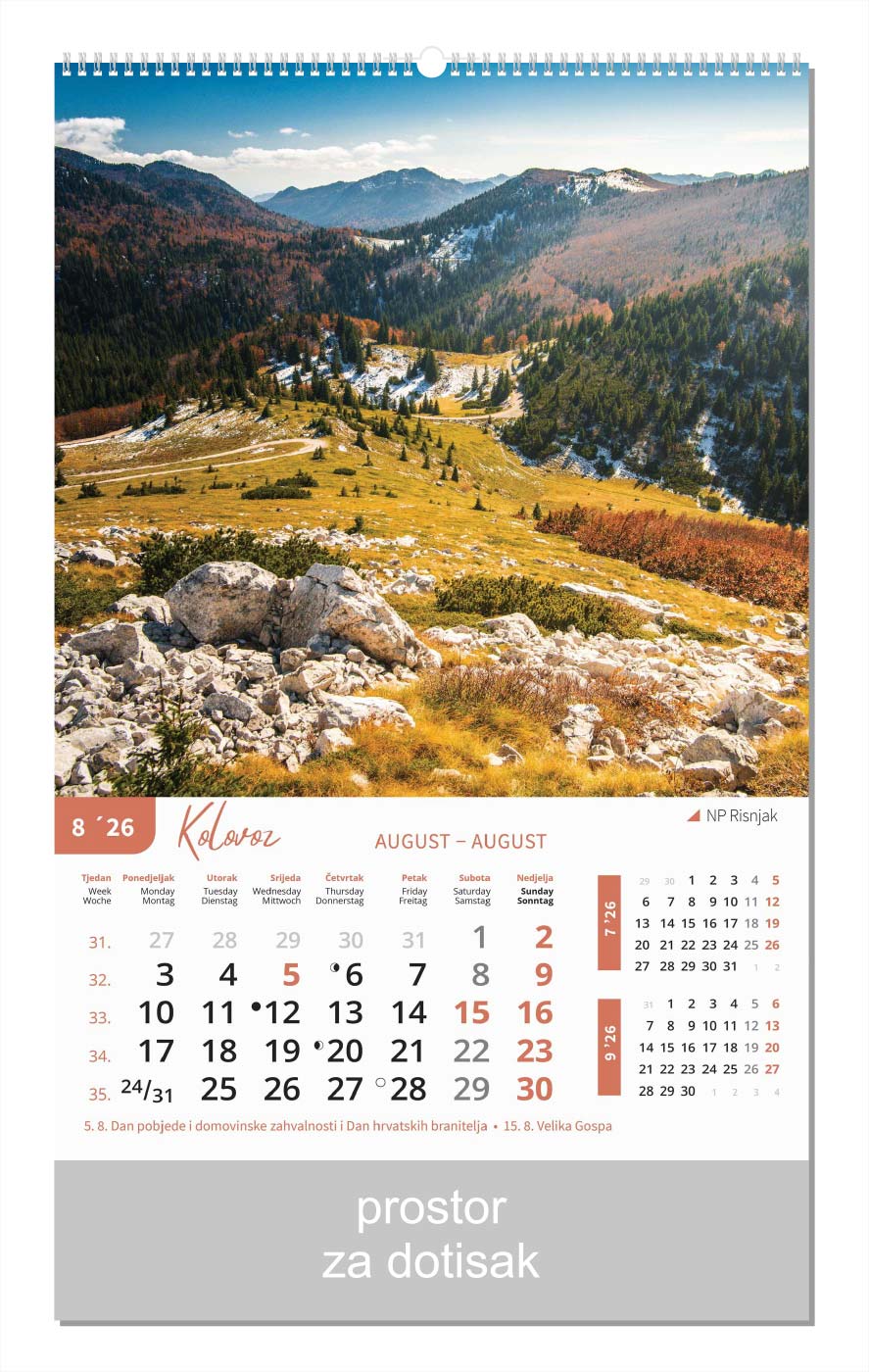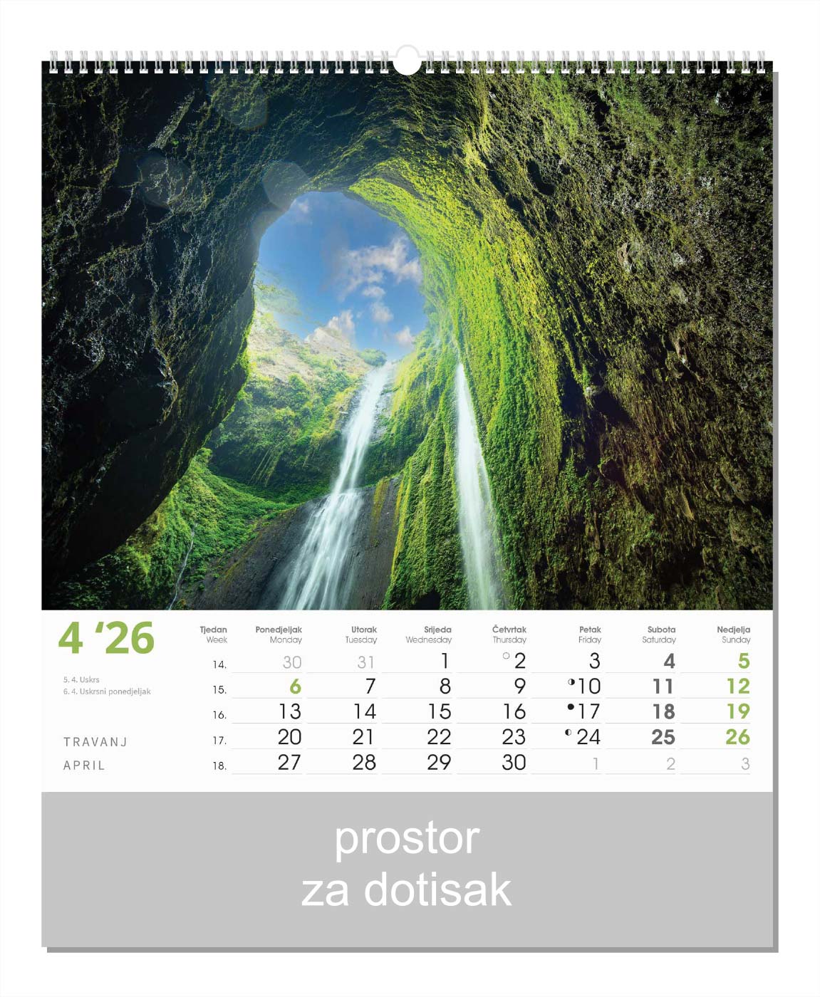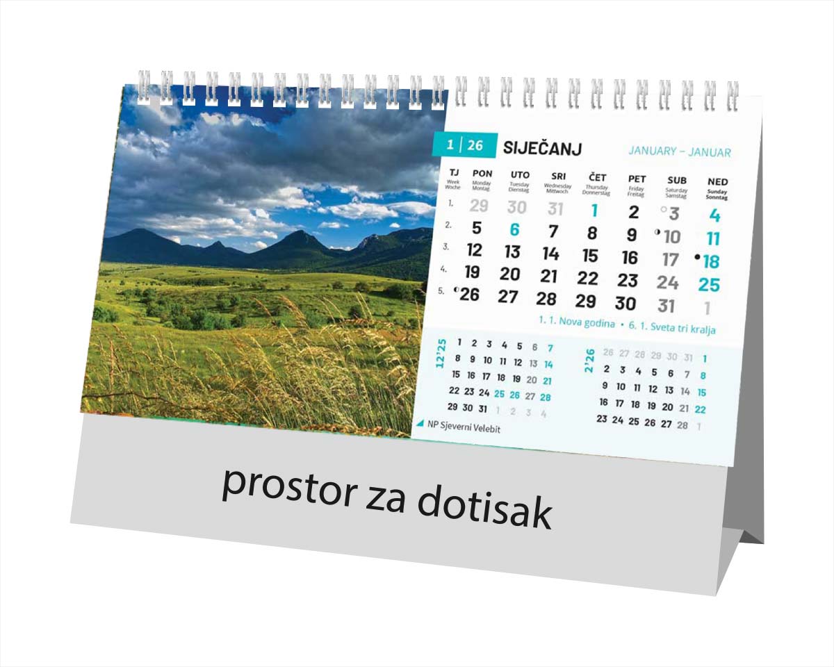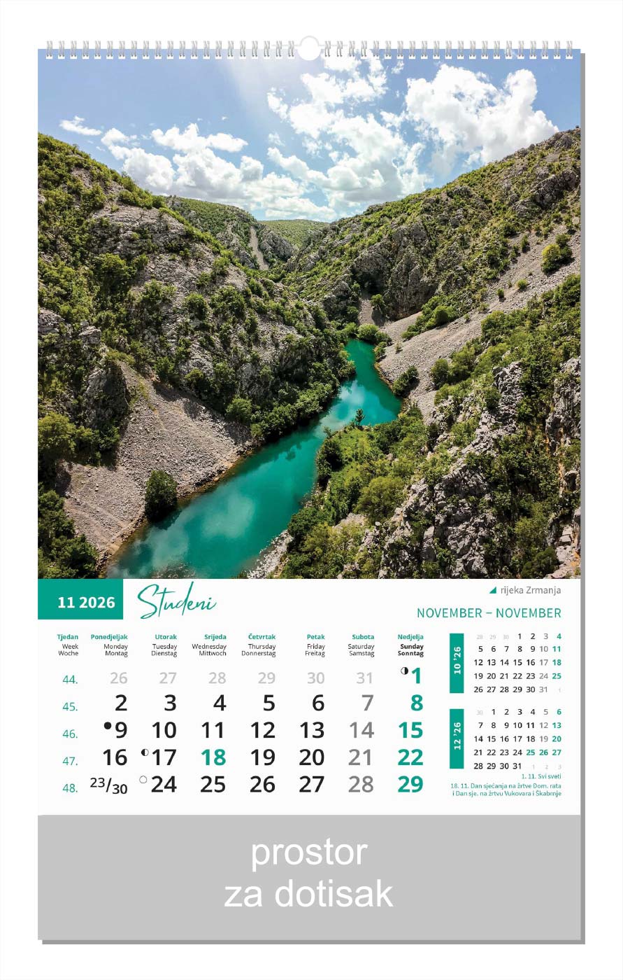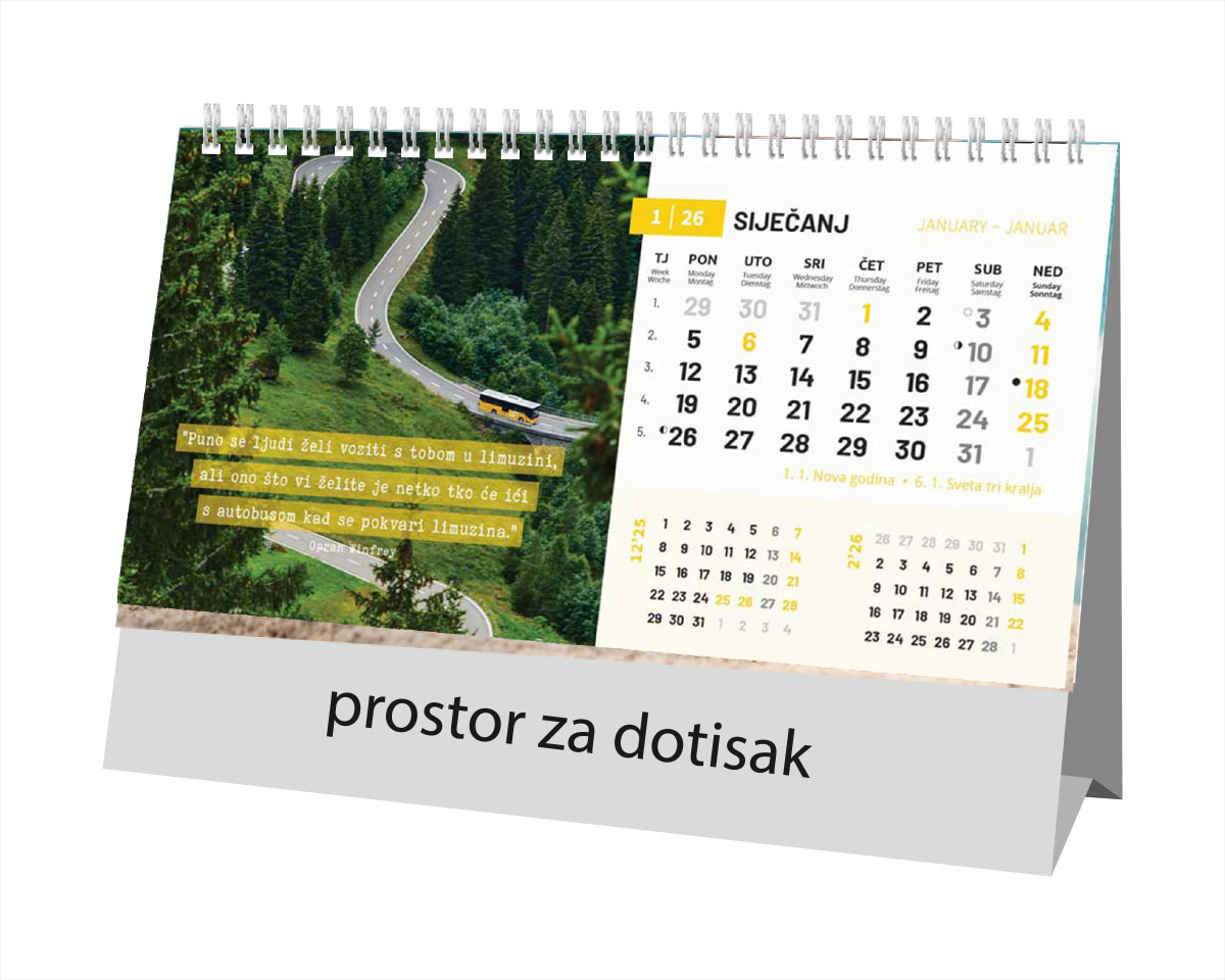 Kao i do sada i u 2026. godini imamo u programu izradu kalendara s individualnim dizajnom. Za kalendare se koriste fotografije naručitelja, ali možemo isto tako ponuditi i fotografije iz naše baze fotografija.