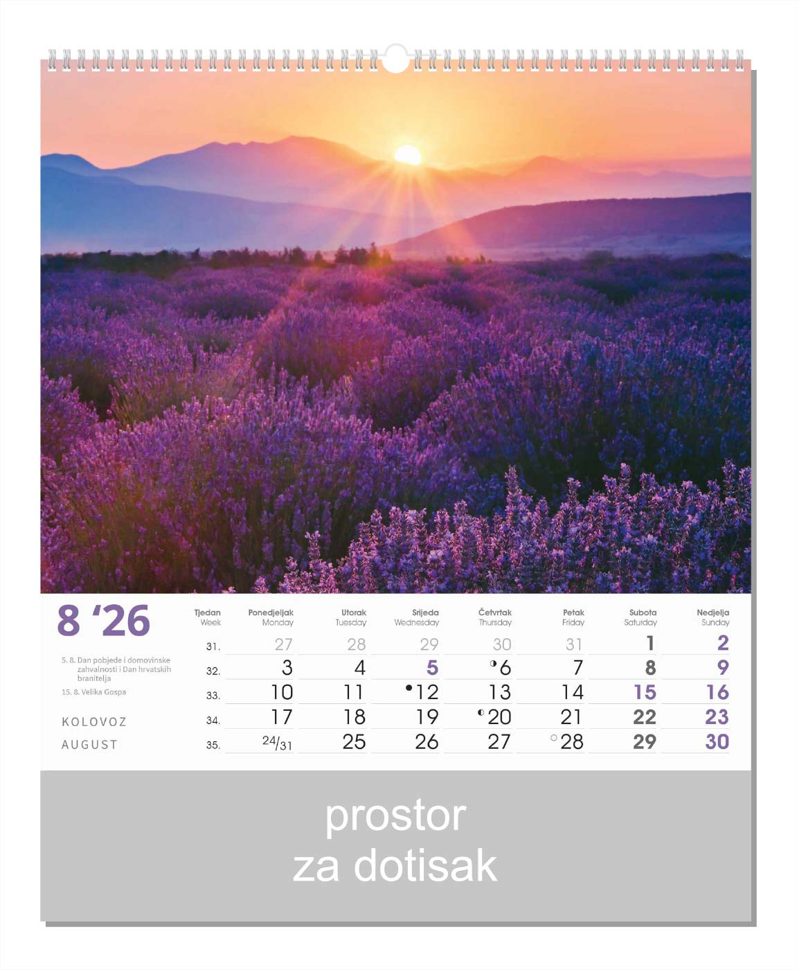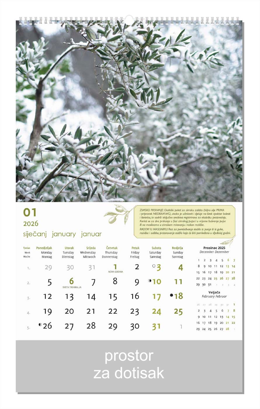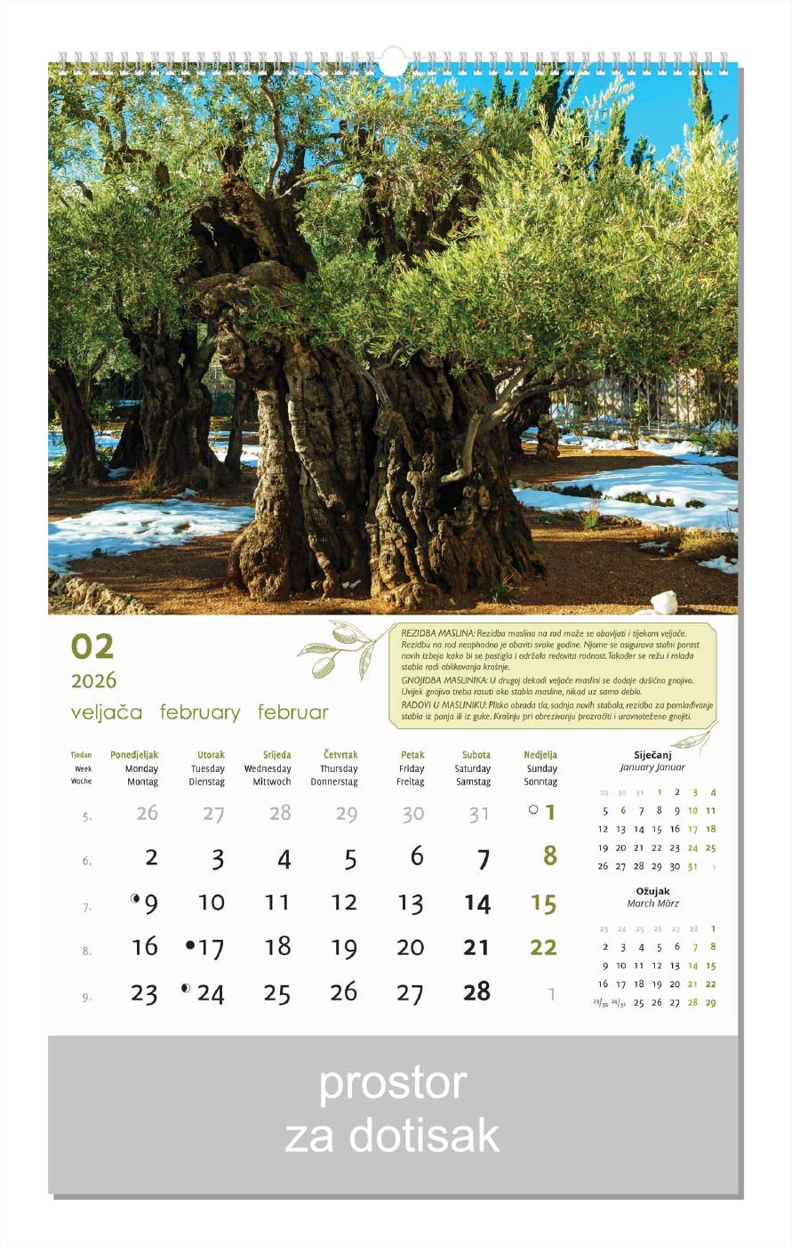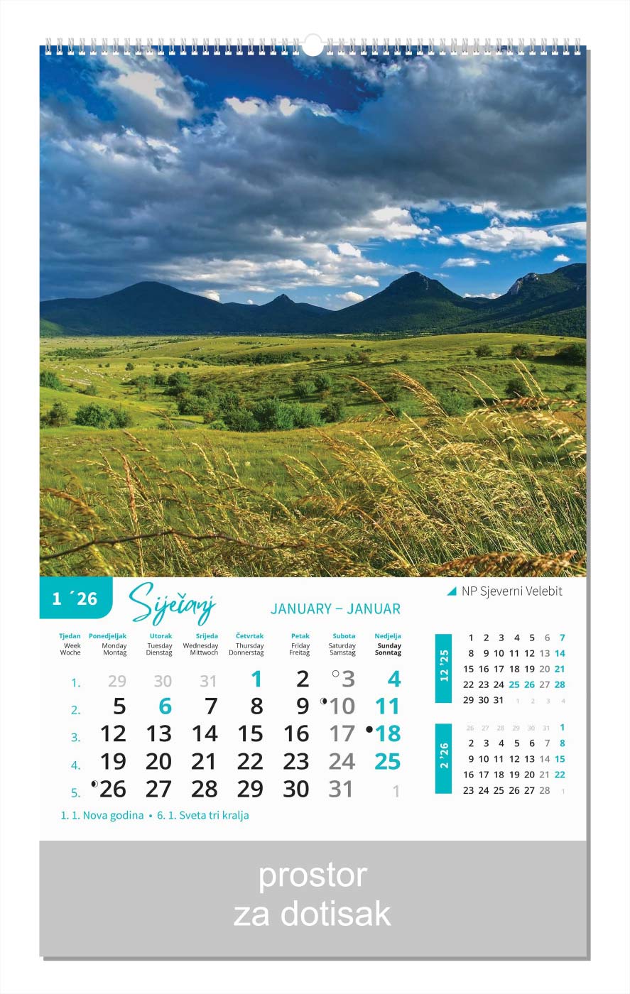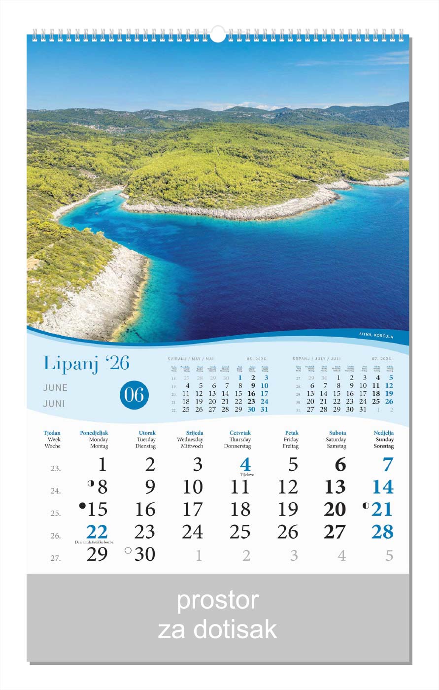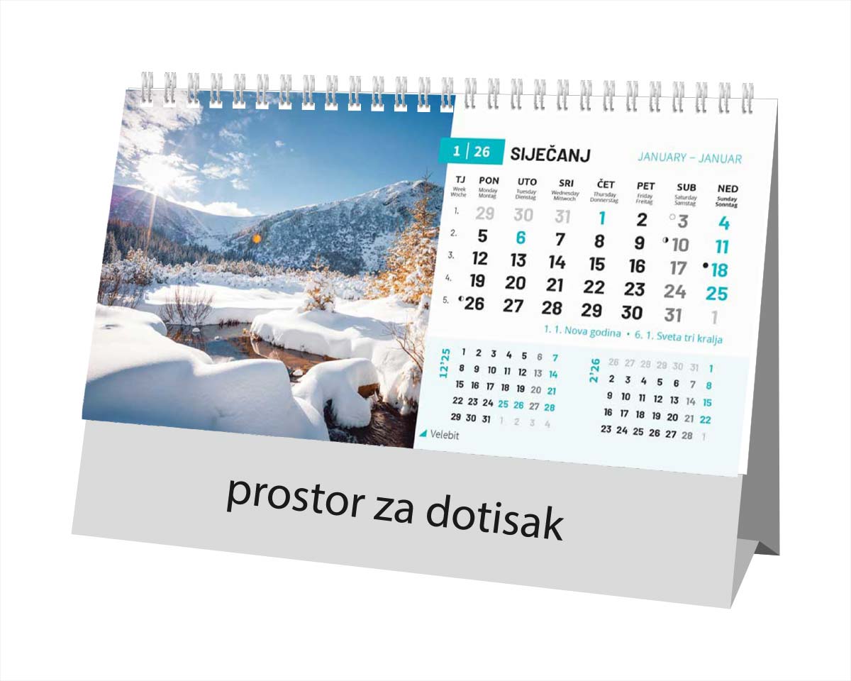 Kao i do sada i u 2026. godini imamo u programu izradu kalendara s individualnim dizajnom. Za kalendare se koriste fotografije naručitelja, ali možemo isto tako ponuditi i fotografije iz naše baze fotografija.