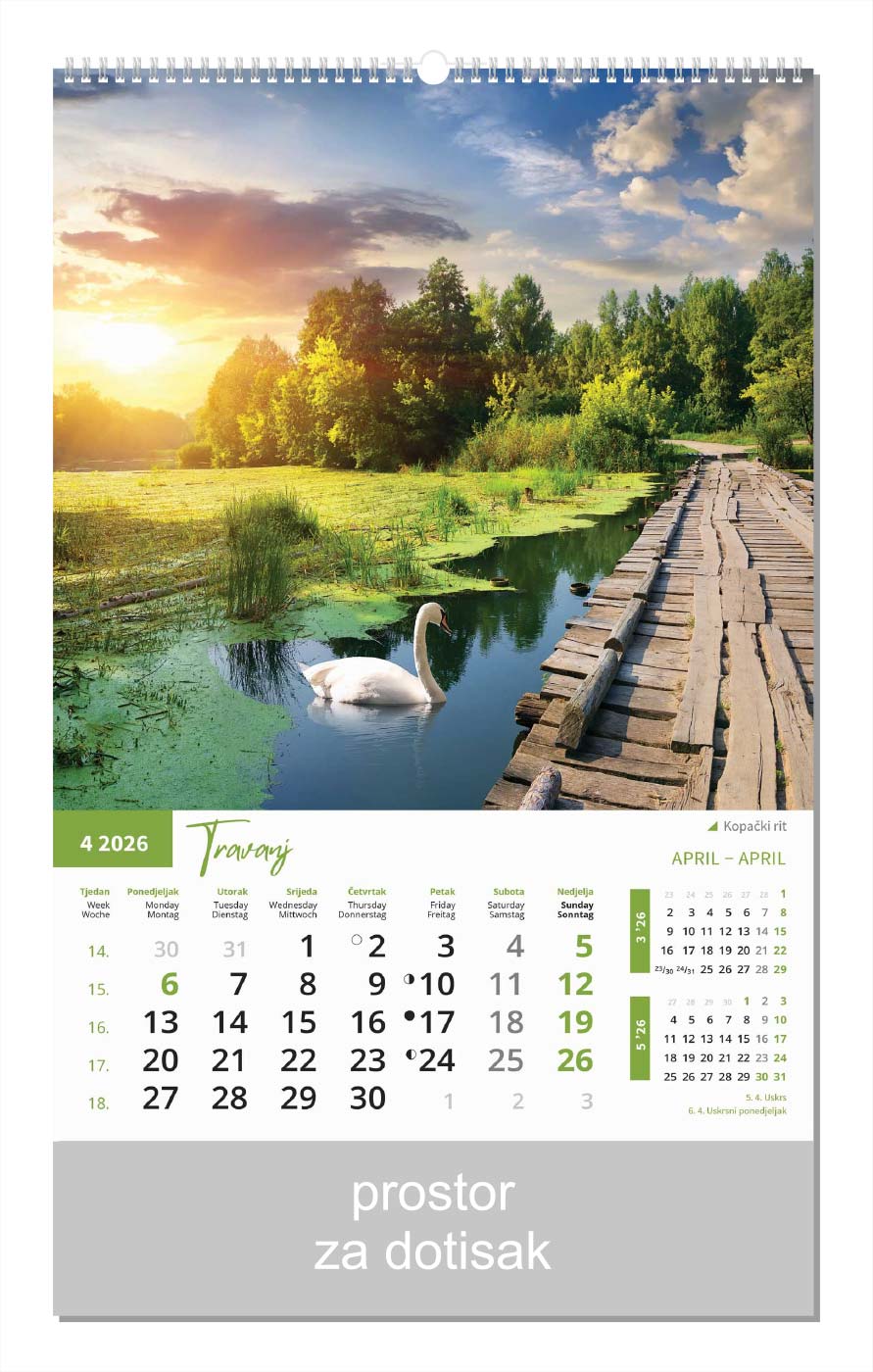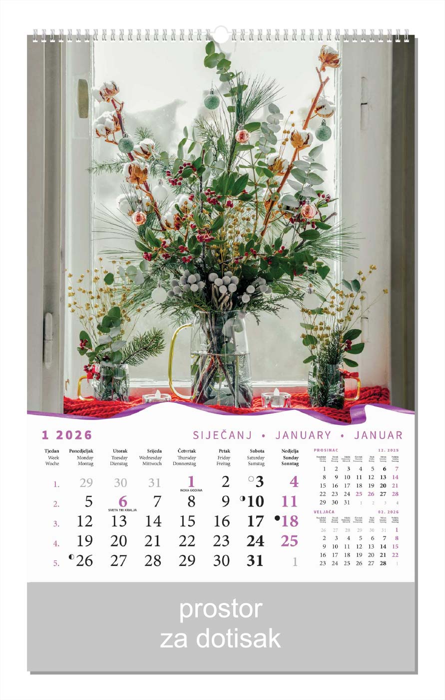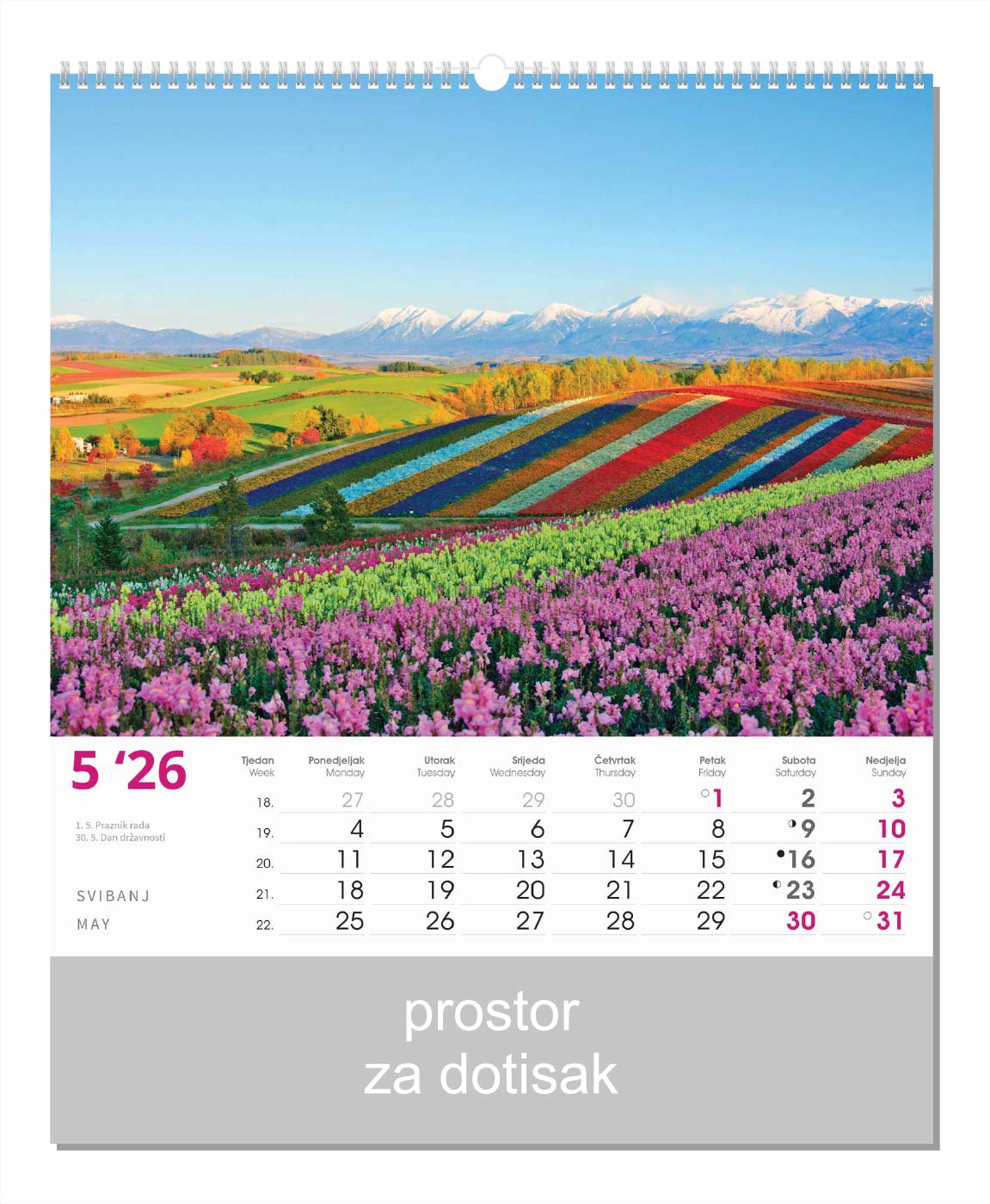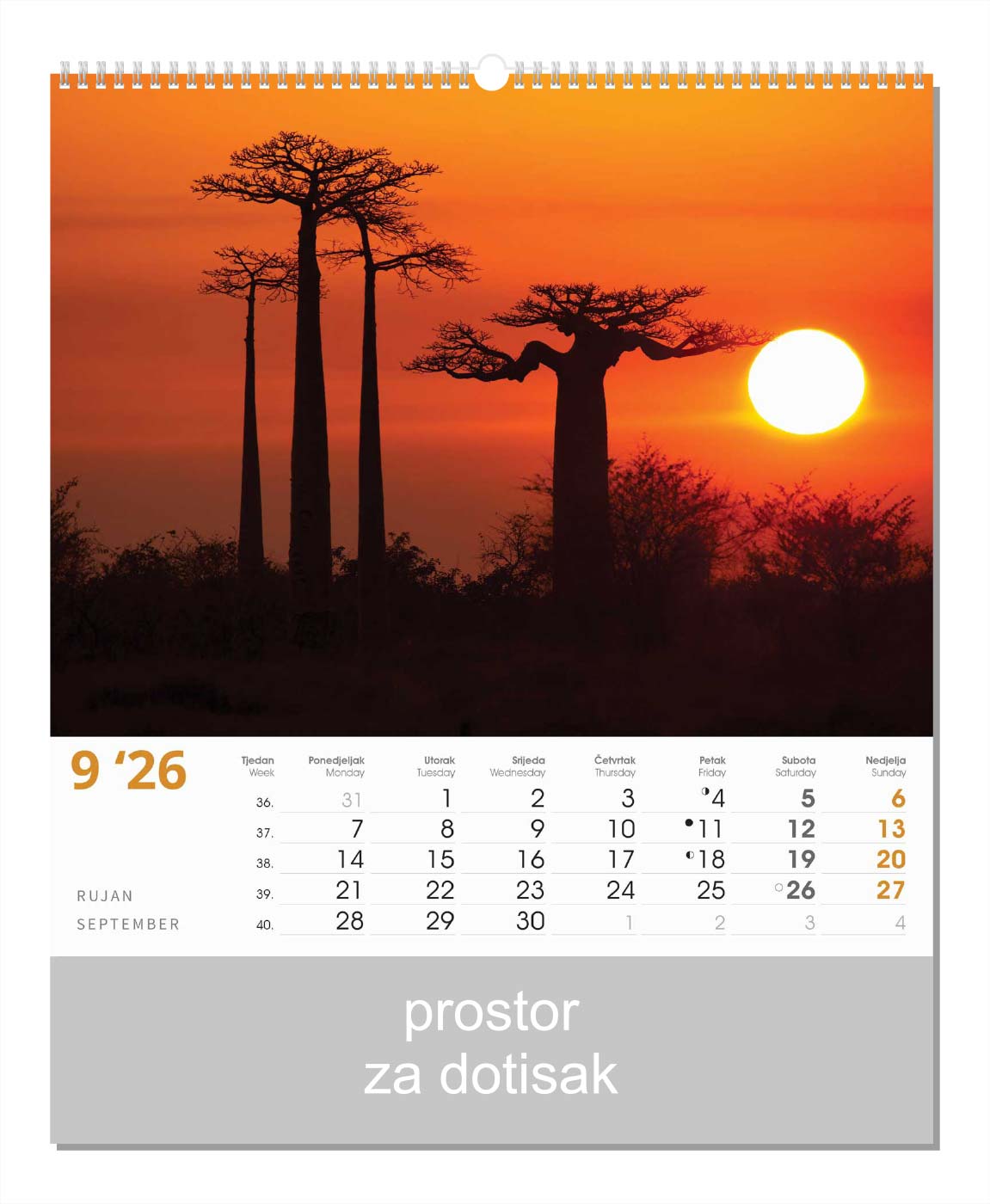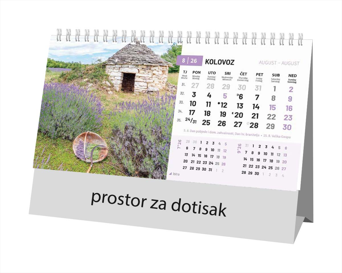 Kao i do sada i u 2026. godini imamo u programu izradu kalendara s individualnim dizajnom. Za kalendare se koriste fotografije naručitelja, ali možemo isto tako ponuditi i fotografije iz naše baze fotografija.