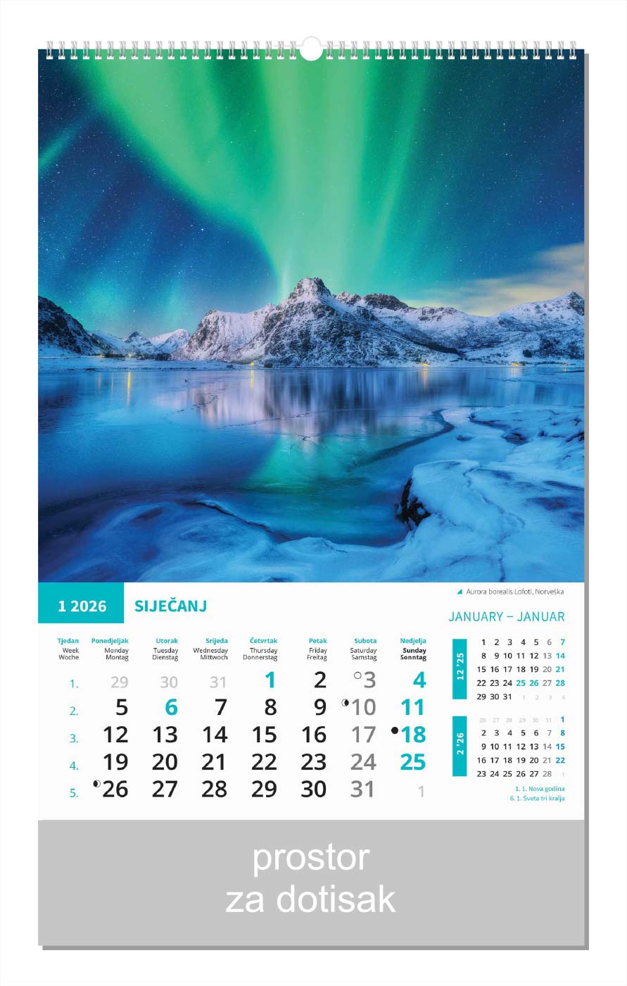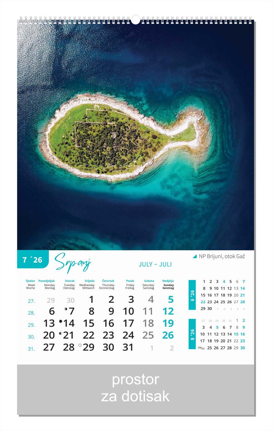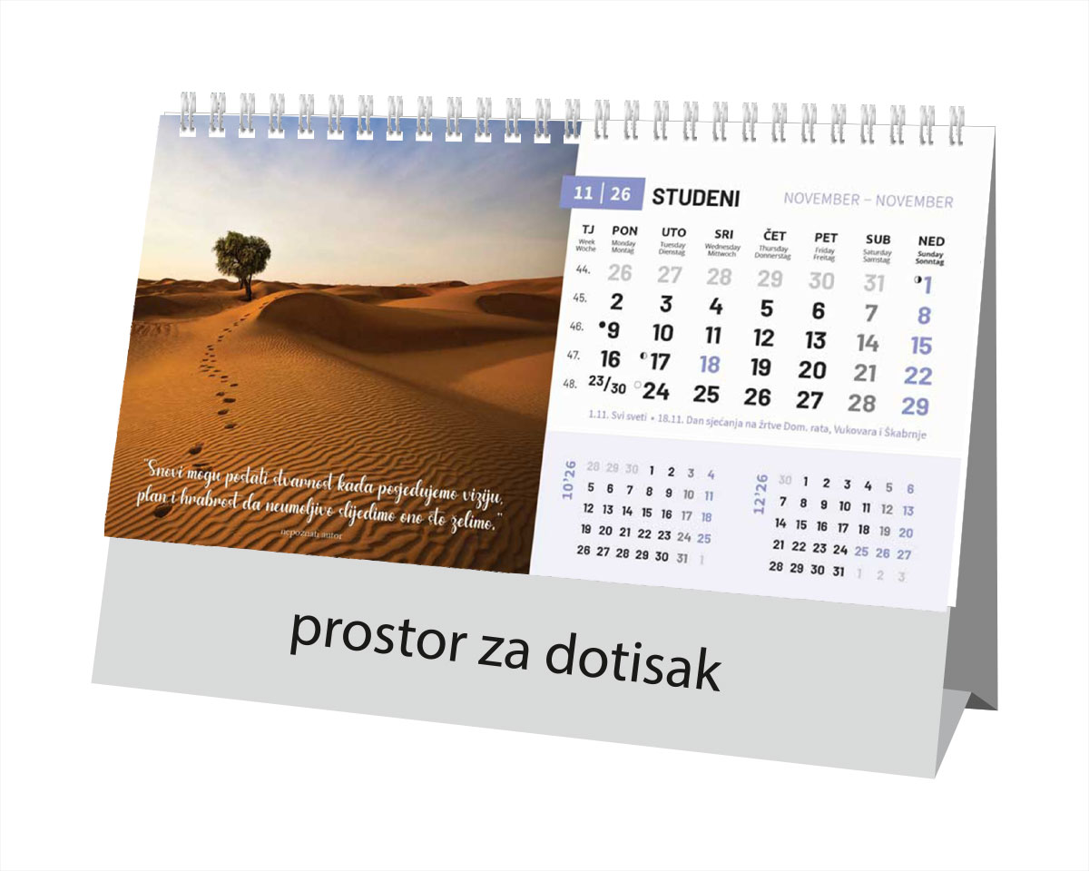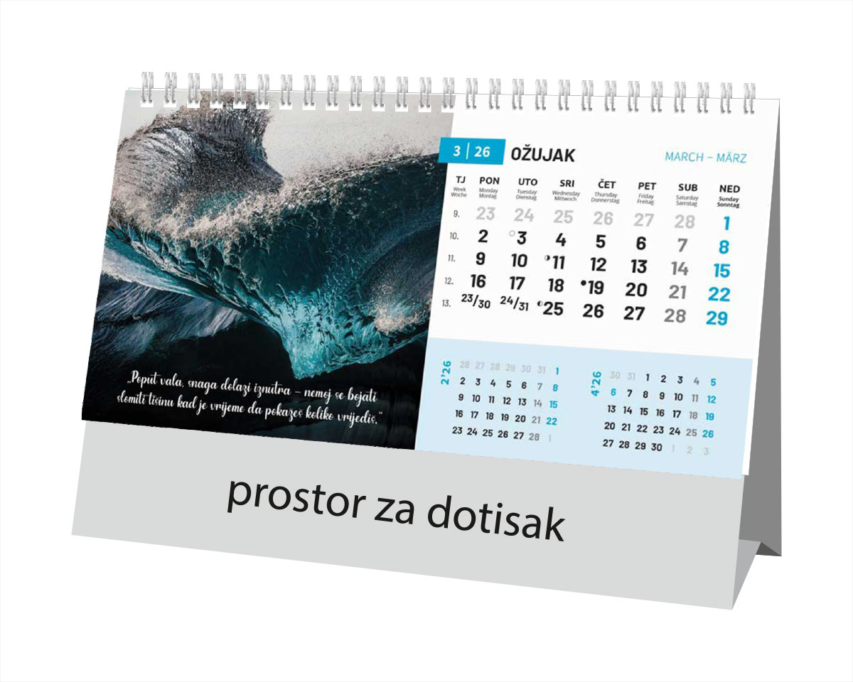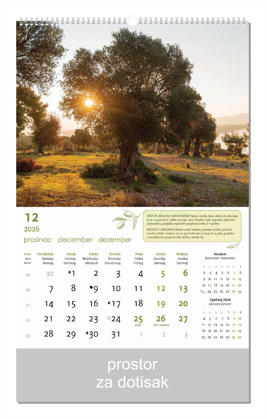 Kao i do sada i u 2026. godini imamo u programu izradu kalendara s individualnim dizajnom. Za kalendare se koriste fotografije naručitelja, ali možemo isto tako ponuditi i fotografije iz naše baze fotografija.