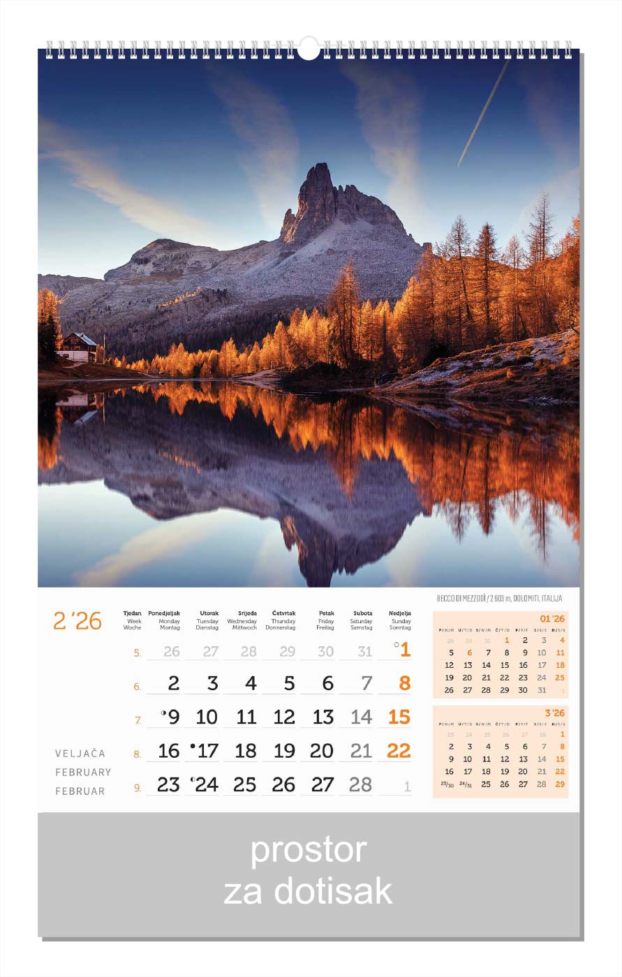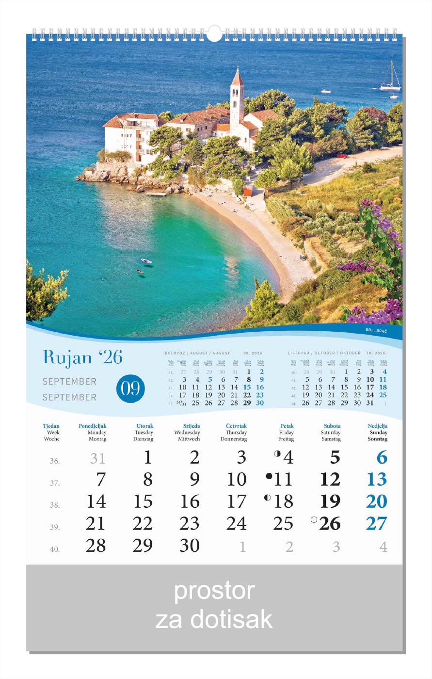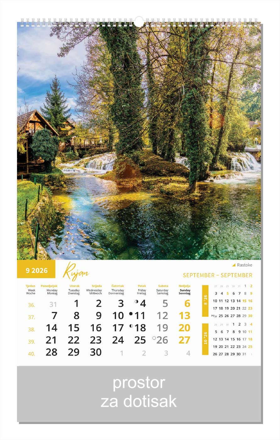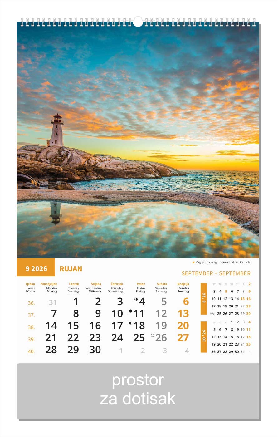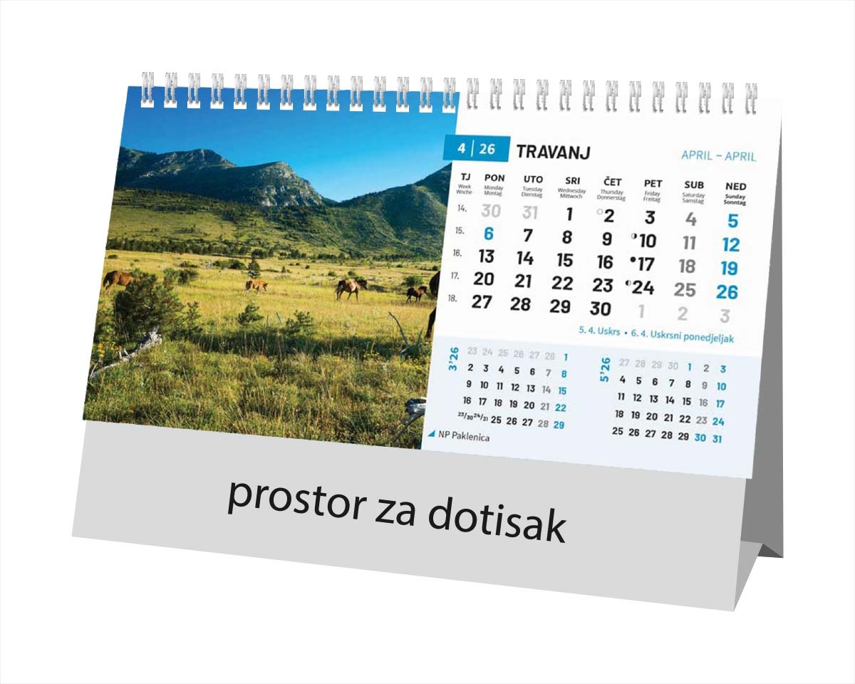 Kao i do sada i u 2026. godini imamo u programu izradu kalendara s individualnim dizajnom. Za kalendare se koriste fotografije naručitelja, ali možemo isto tako ponuditi i fotografije iz naše baze fotografija.