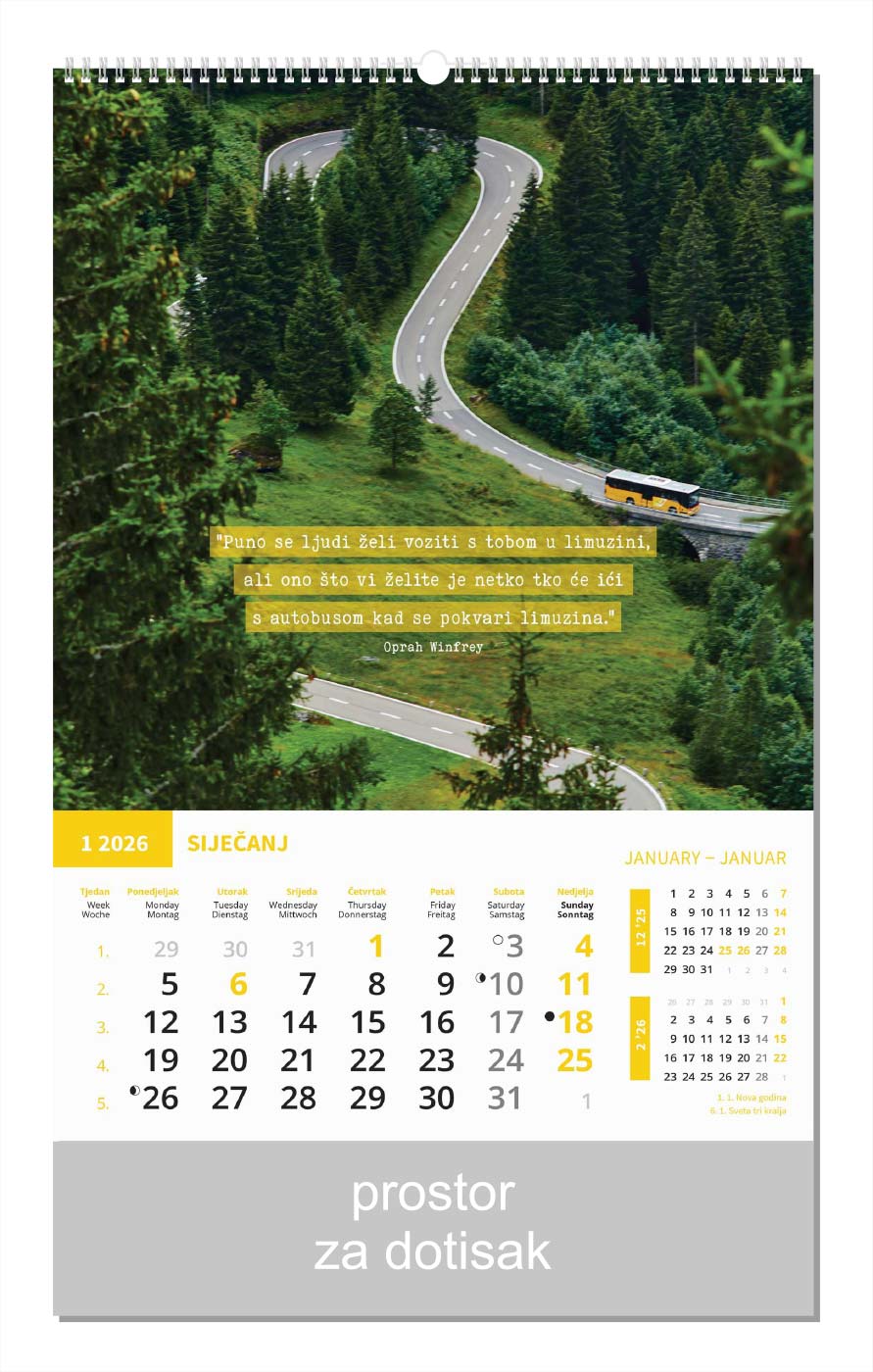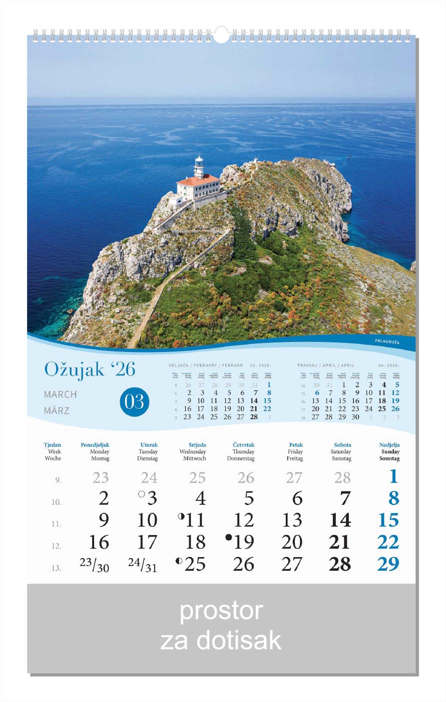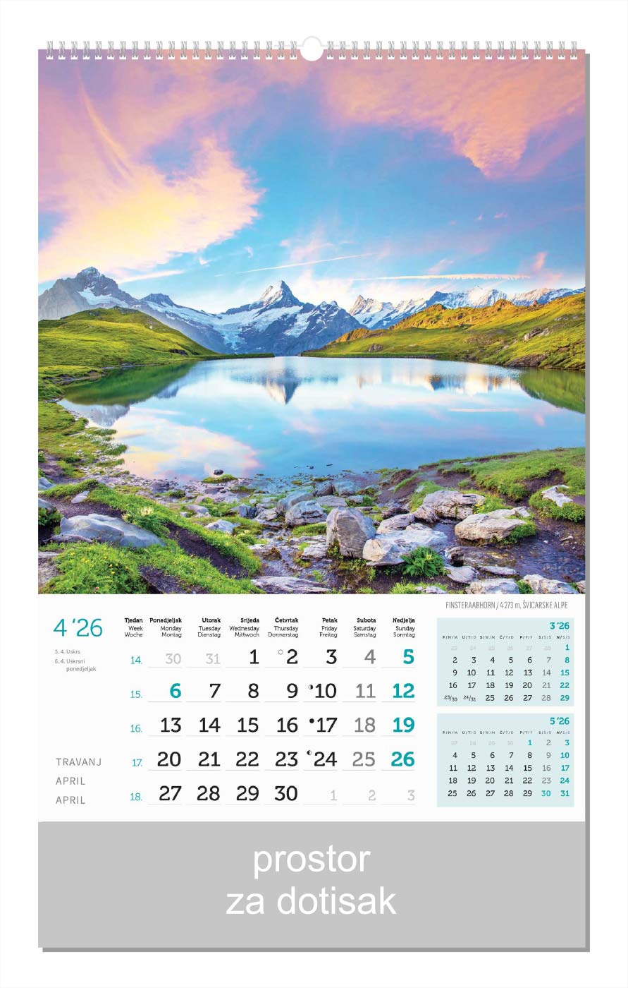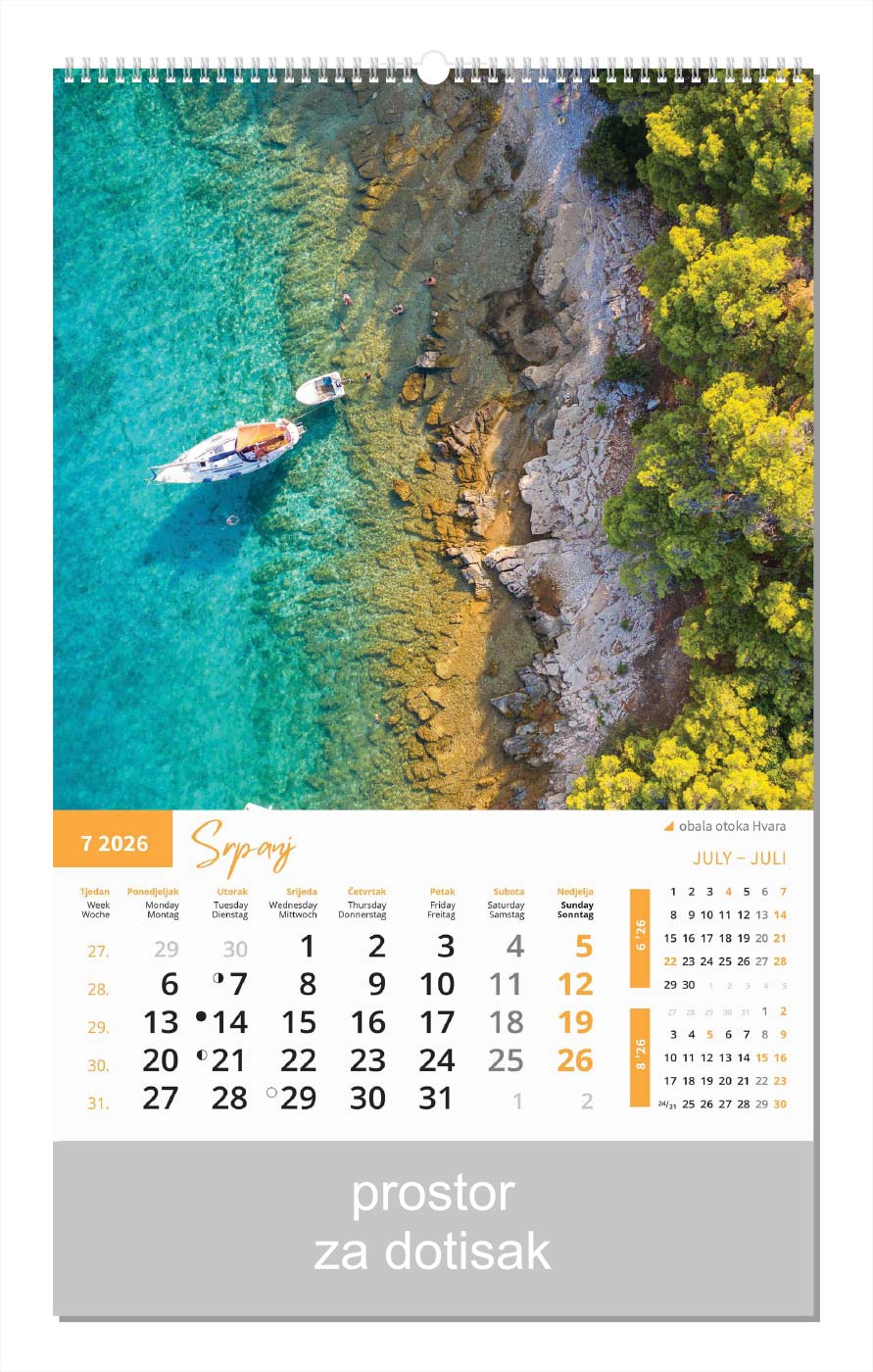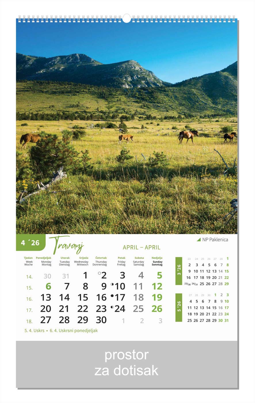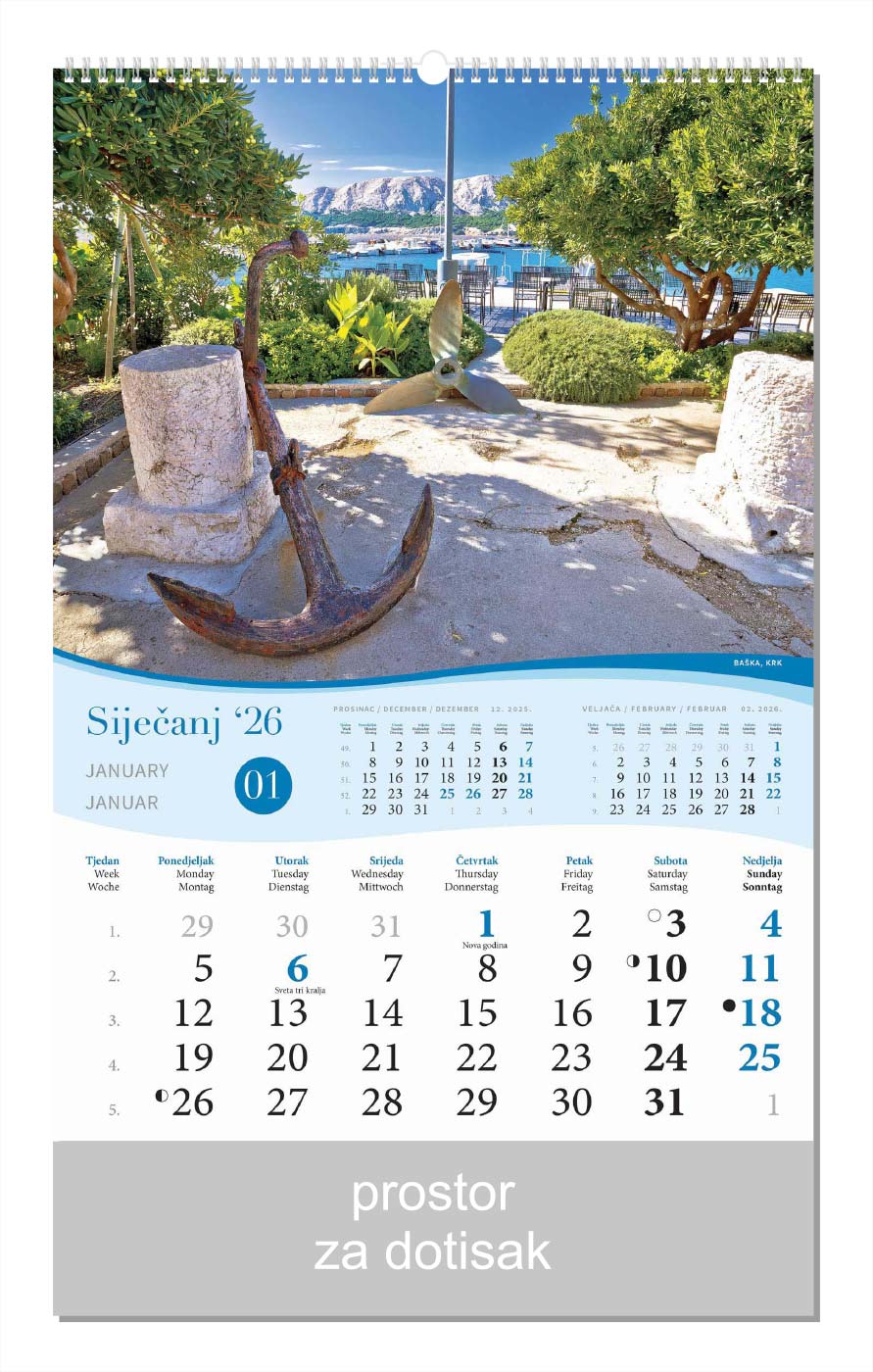 Kao i do sada i u 2026. godini imamo u programu izradu kalendara s individualnim dizajnom. Za kalendare se koriste fotografije naručitelja, ali možemo isto tako ponuditi i fotografije iz naše baze fotografija.