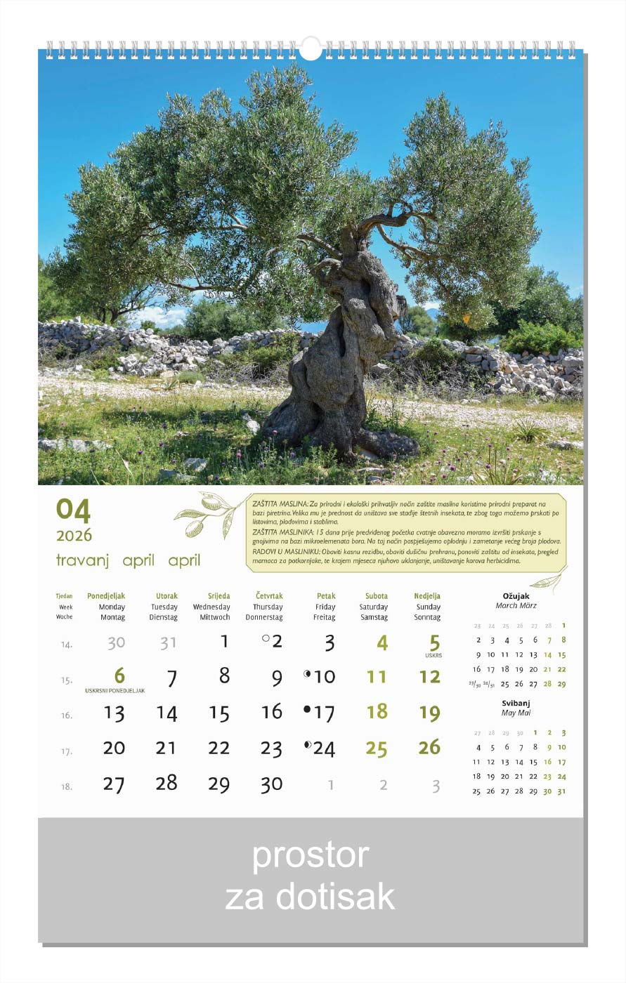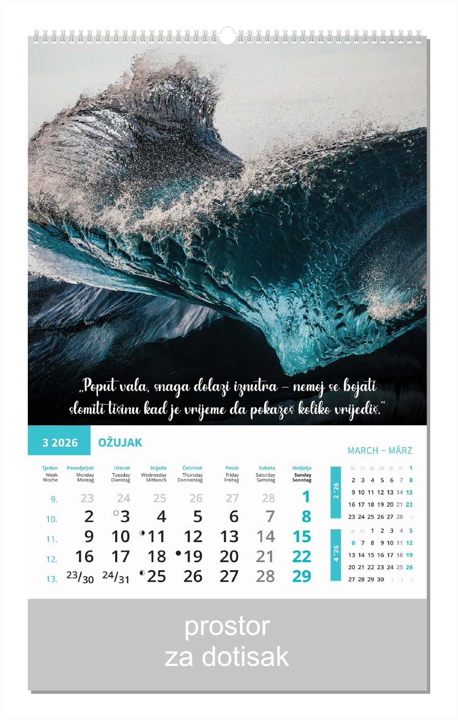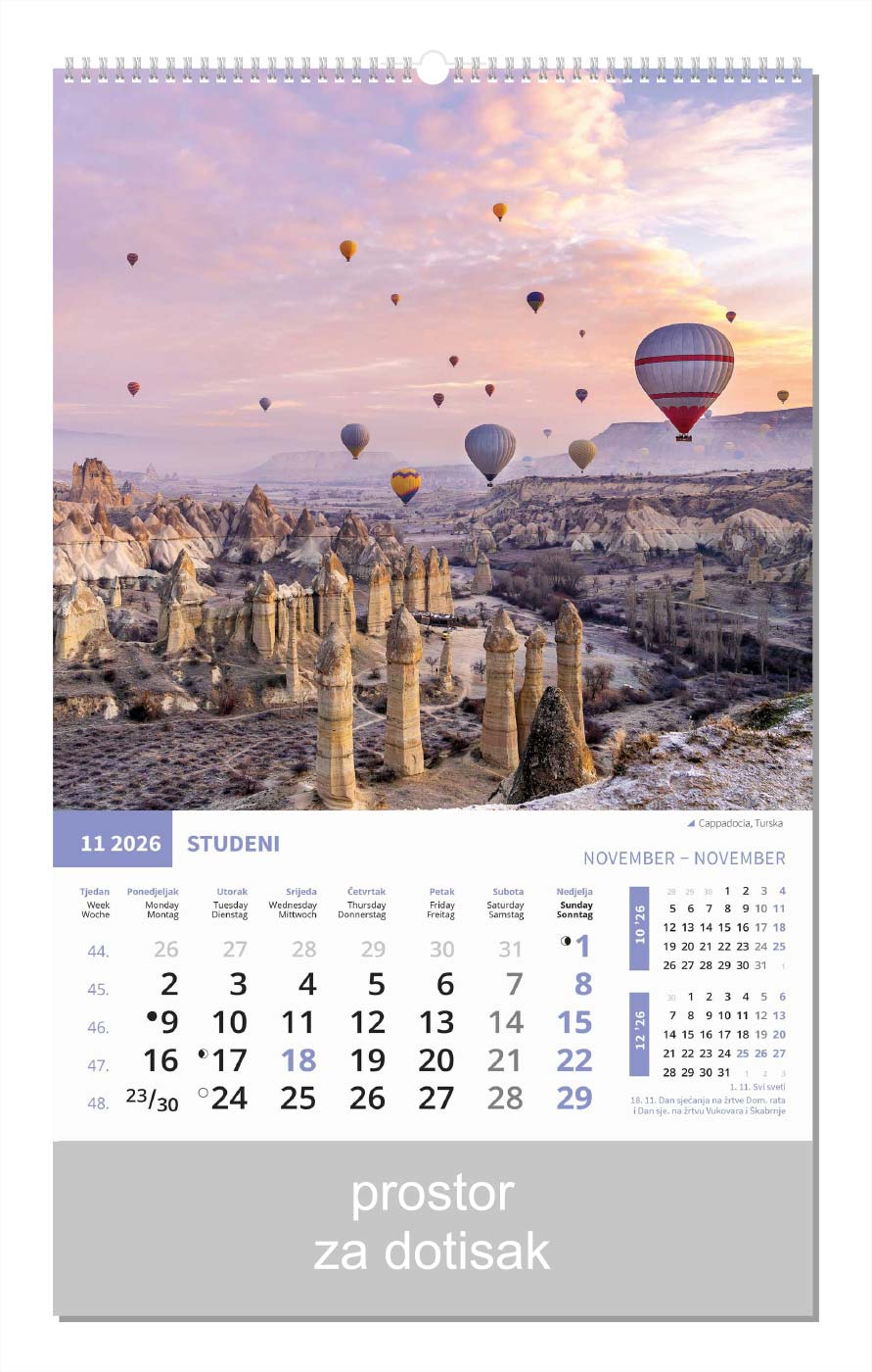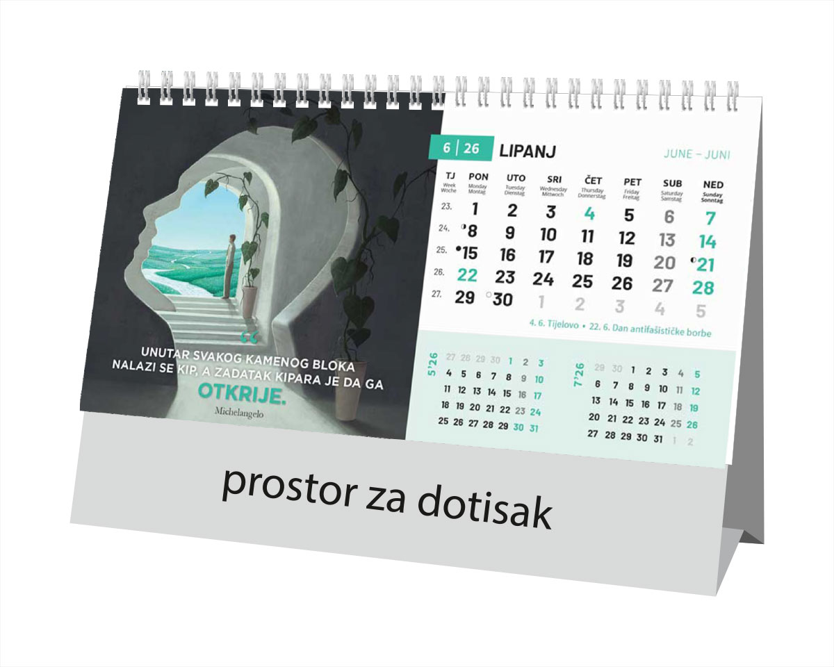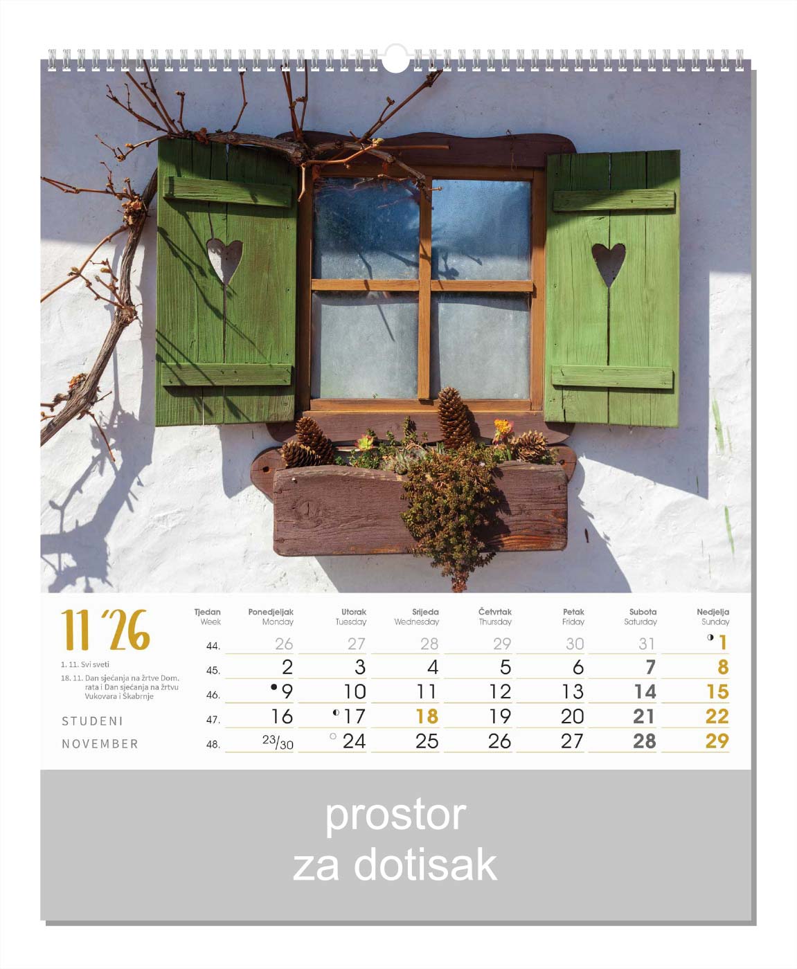 Kao i do sada i u 2026. godini imamo u programu izradu kalendara s individualnim dizajnom. Za kalendare se koriste fotografije naručitelja, ali možemo isto tako ponuditi i fotografije iz naše baze fotografija.