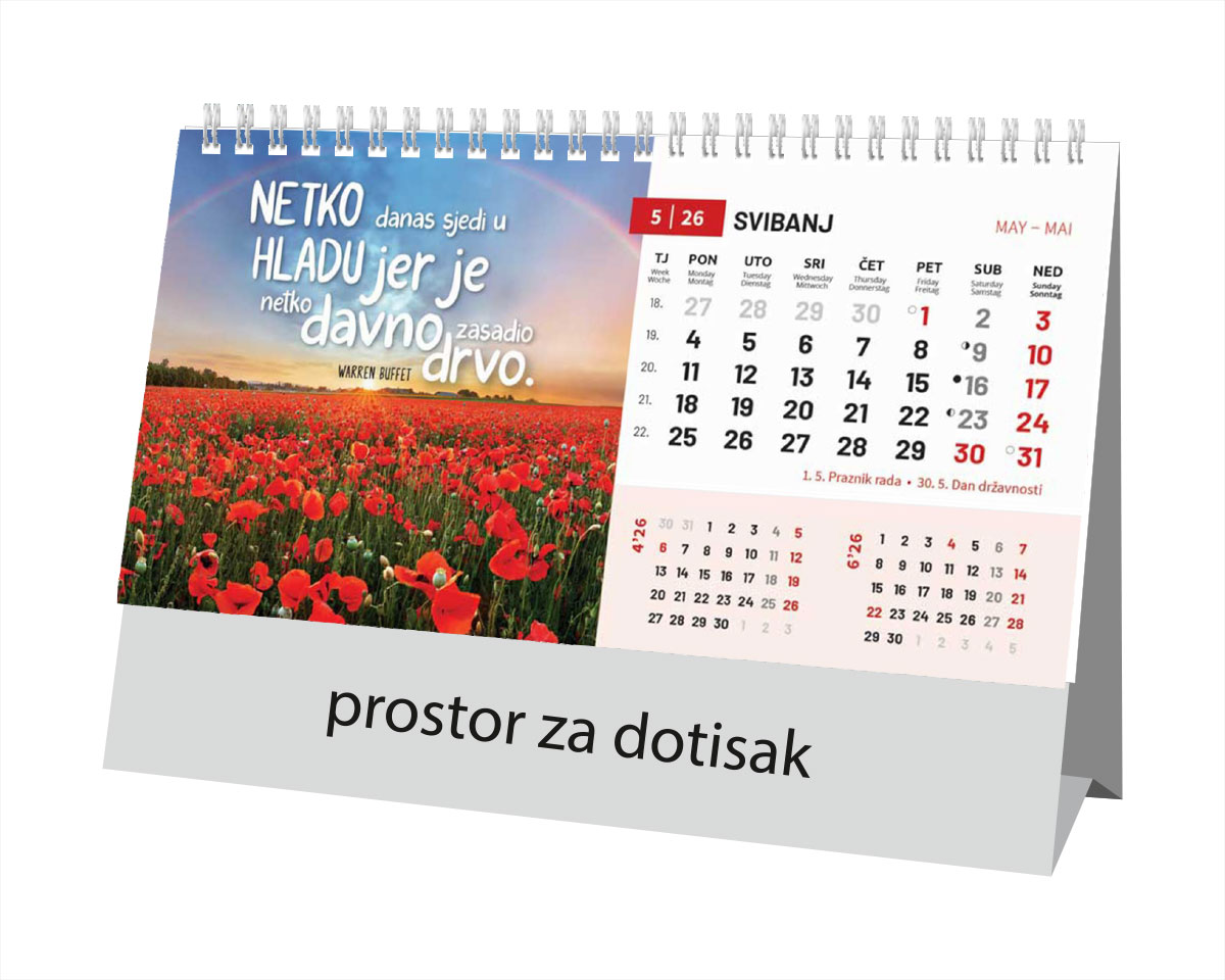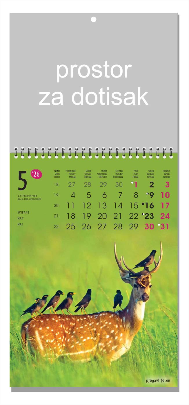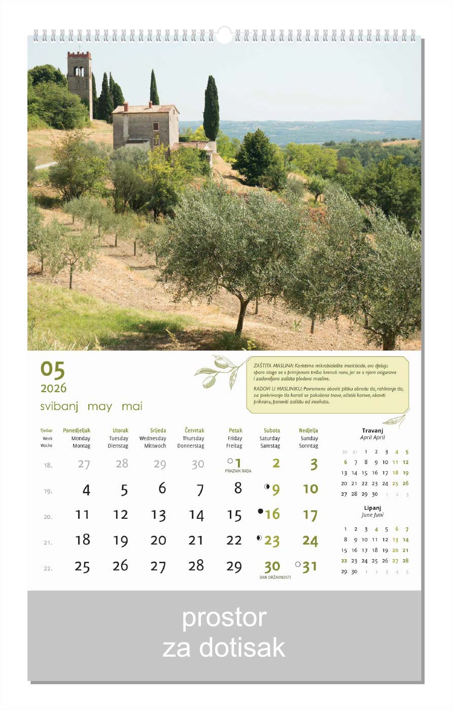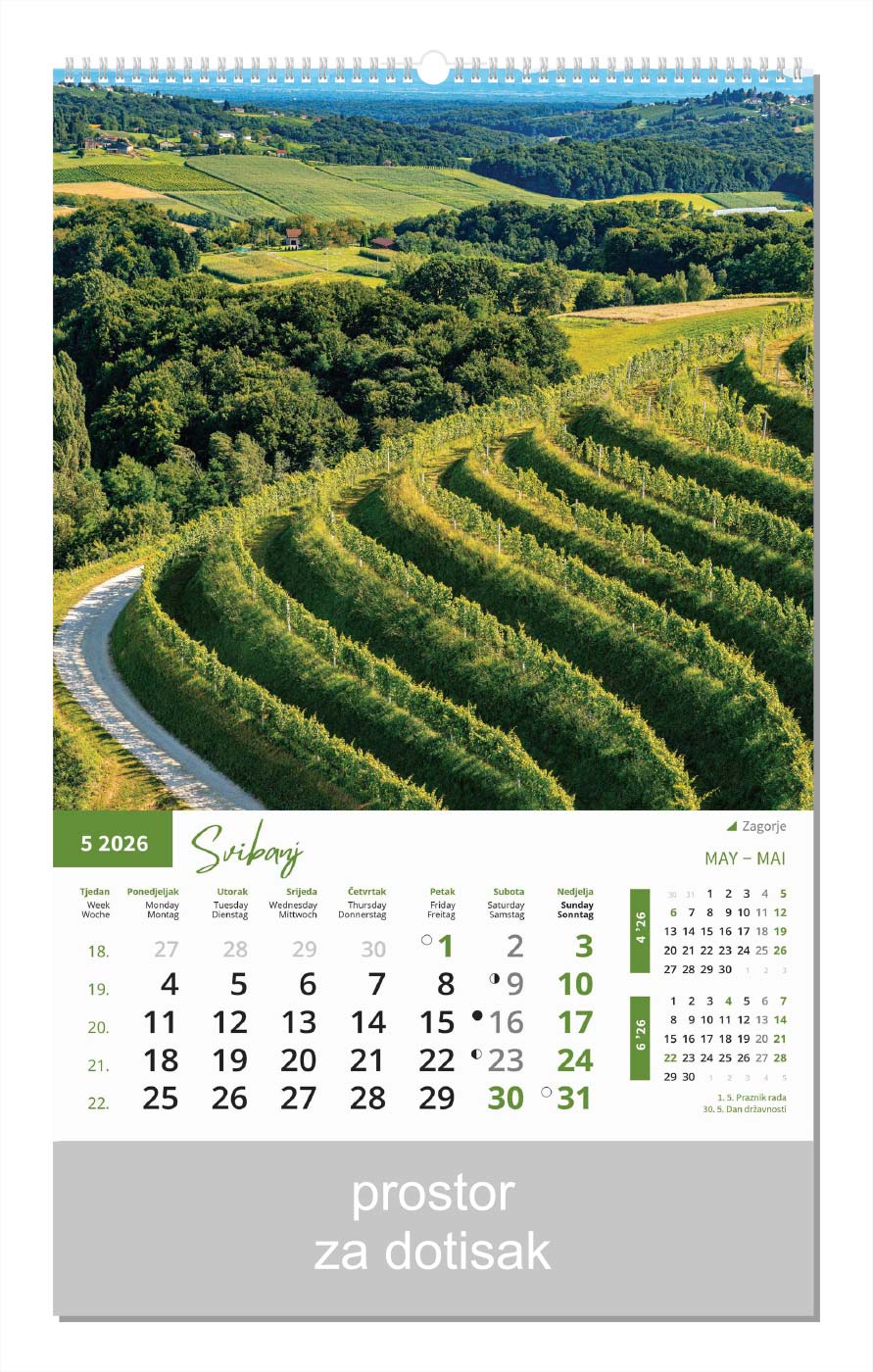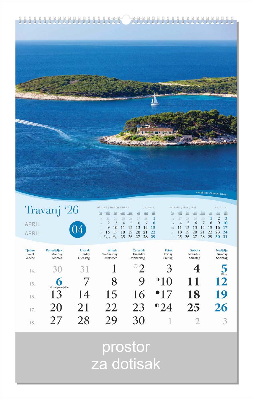 Kao i do sada i u 2026. godini imamo u programu izradu kalendara s individualnim dizajnom. Za kalendare se koriste fotografije naručitelja, ali možemo isto tako ponuditi i fotografije iz naše baze fotografija.