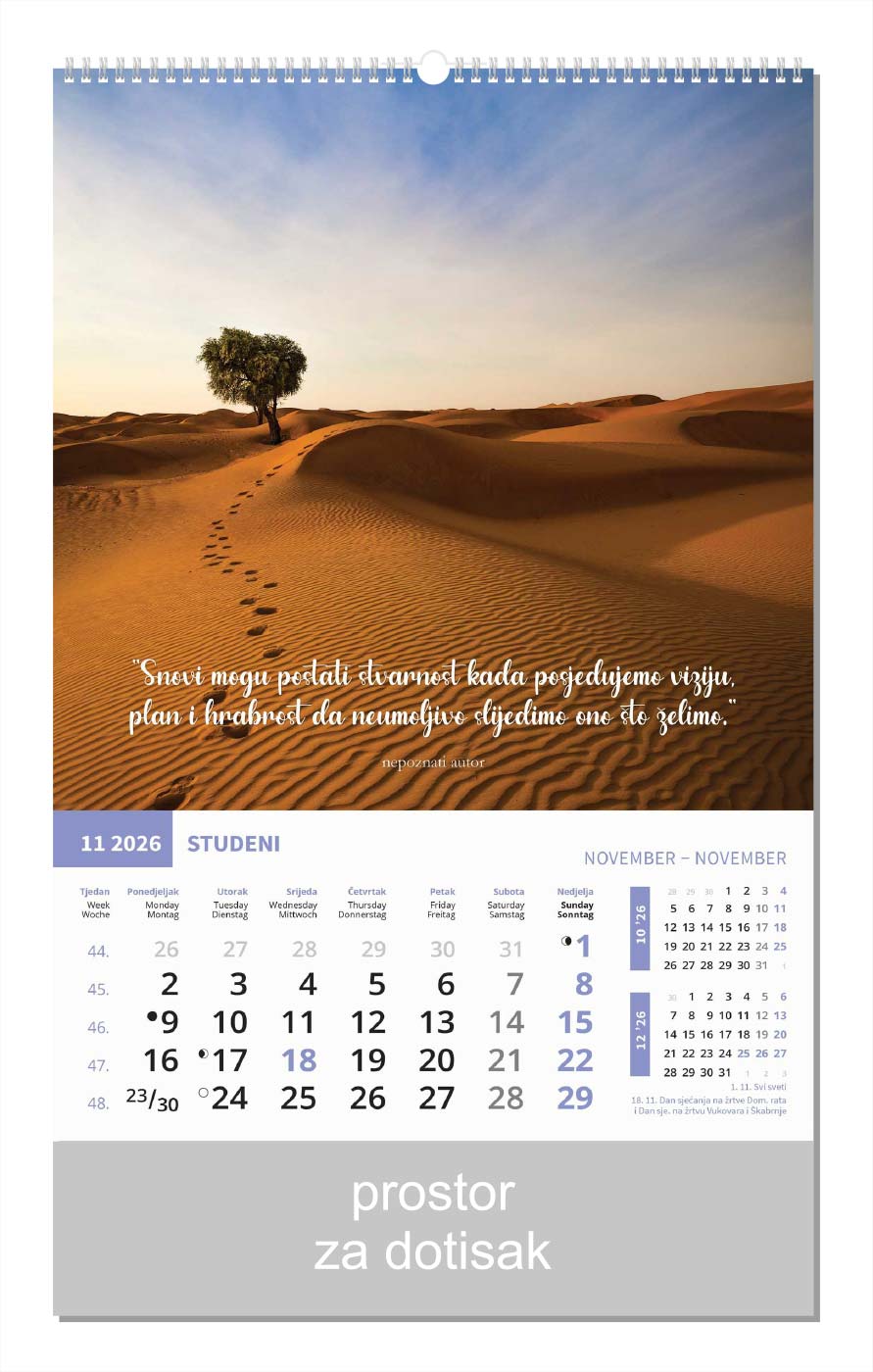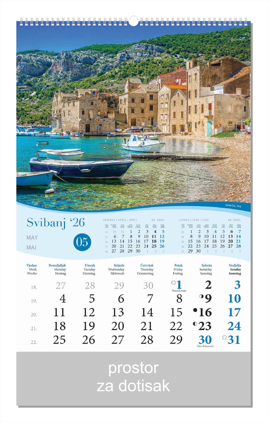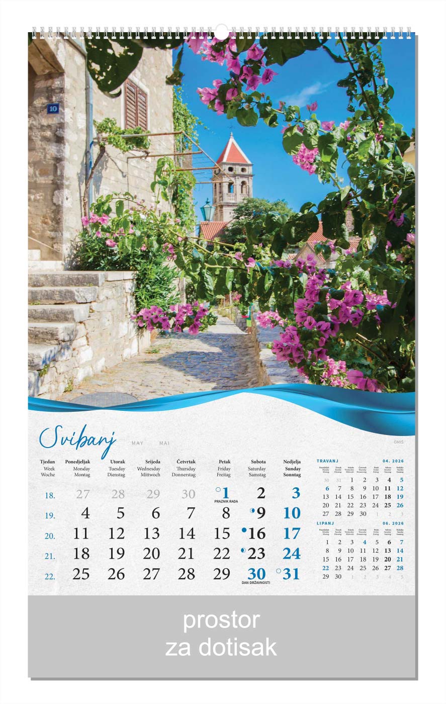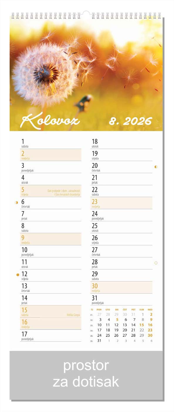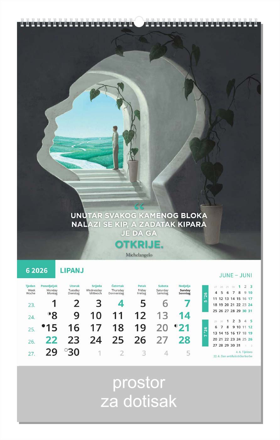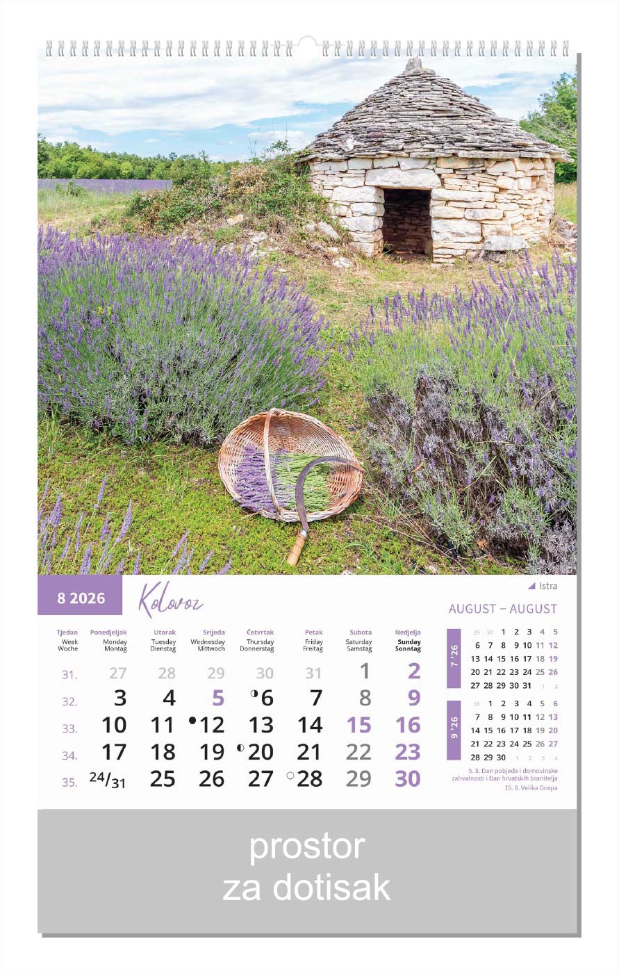 Kao i do sada i u 2026. godini imamo u programu izradu kalendara s individualnim dizajnom. Za kalendare se koriste fotografije naručitelja, ali možemo isto tako ponuditi i fotografije iz naše baze fotografija.