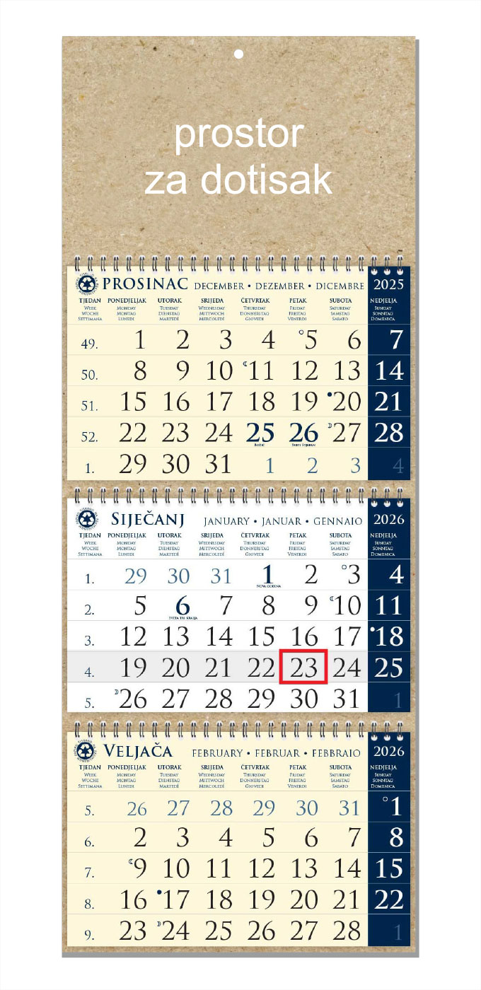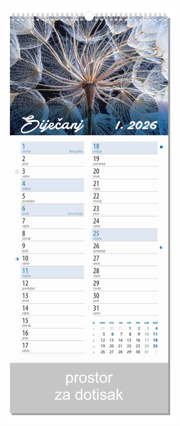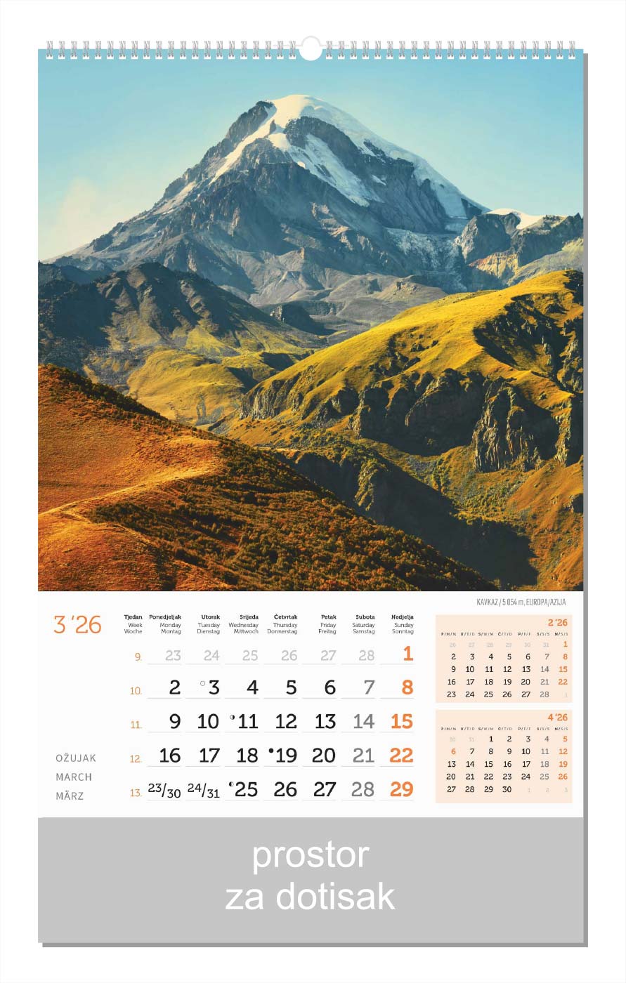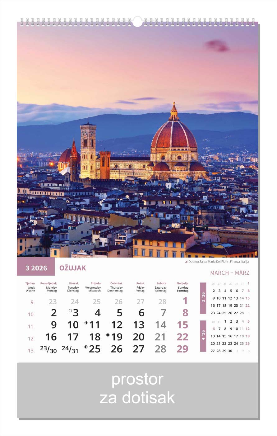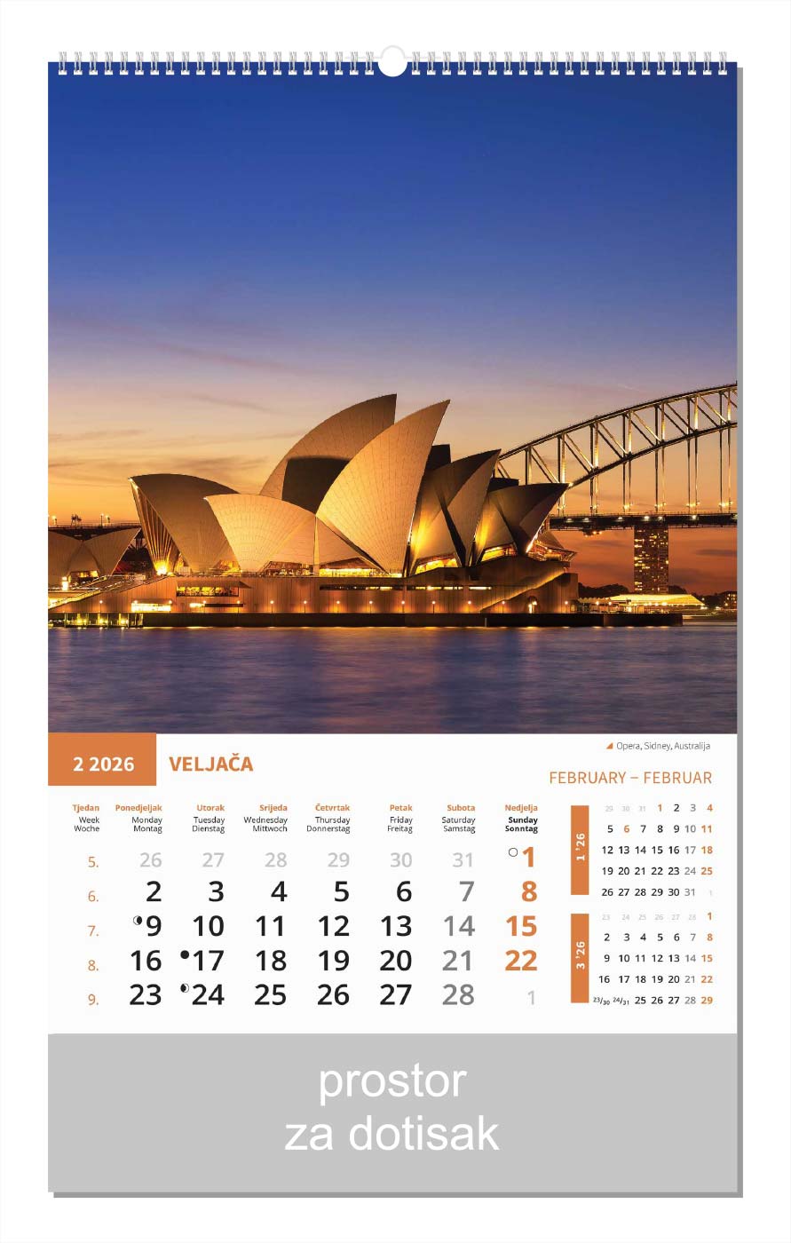 Kao i do sada i u 2026. godini imamo u programu izradu kalendara s individualnim dizajnom. Za kalendare se koriste fotografije naručitelja, ali možemo isto tako ponuditi i fotografije iz naše baze fotografija.