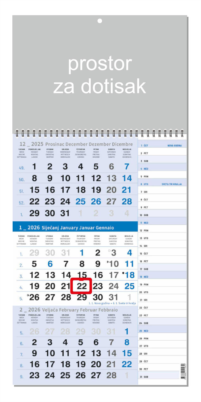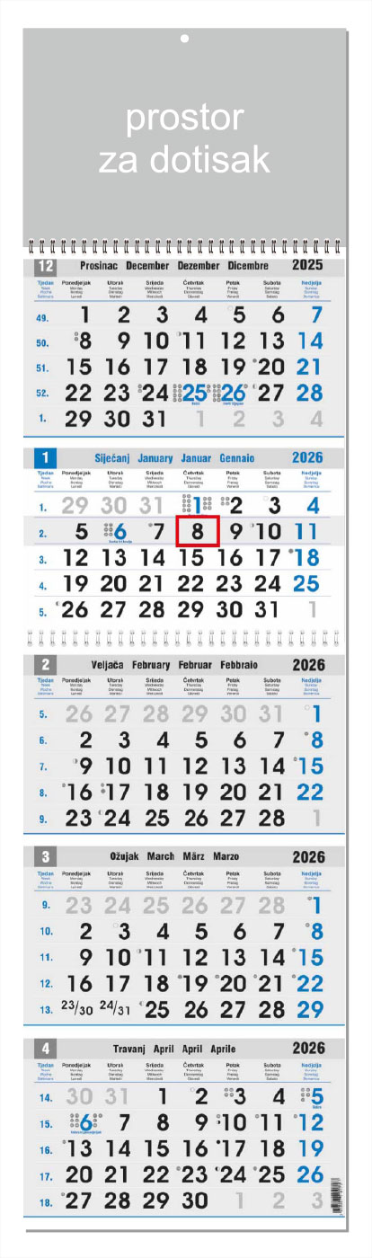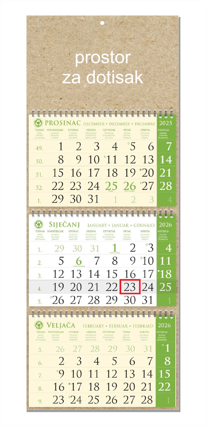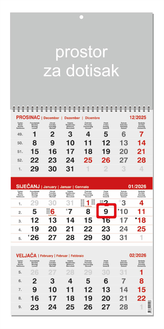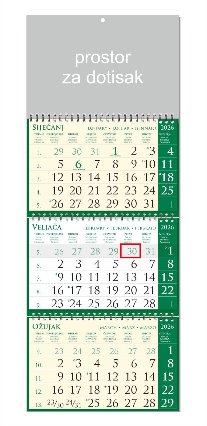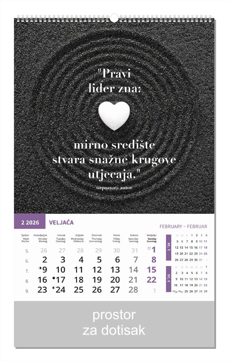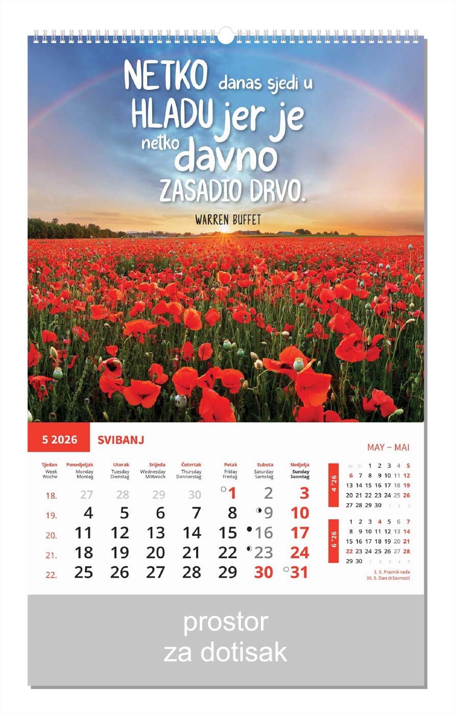 Kao i do sada i u 2026. godini imamo u programu izradu kalendara s individualnim dizajnom. Za kalendare se koriste fotografije naručitelja, ali možemo isto tako ponuditi i fotografije iz naše baze fotografija.