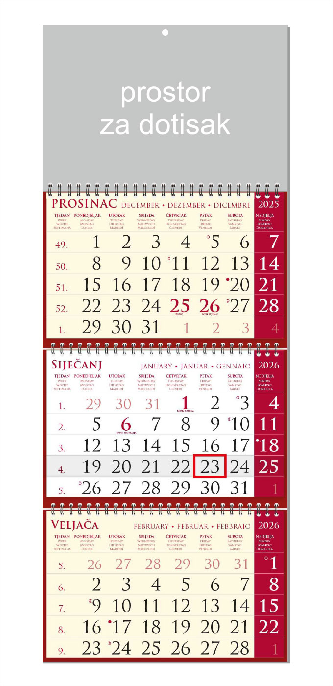 U prodajnom programu imamo gotove kalendare na koje radimo dotisak prema dostavljenoj ili potvrđenoj grafičkoj pripremi na zaglavlje kalendara ili pasicu kalendara. Isključivo isporučujemo kalendare s dotiskom.